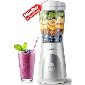 Mueller Heavy-Duty Personal Blender for Shakes and Smoothies with a 15 Oz Travel Cup and Lid, Juices, Baby Food, Portable Blender & Food Processor, White