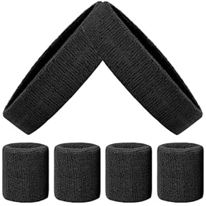 6 Pack Sports Wrist Sweatbands Set Headband Wristband Set, Moisture Wicking Sweat Bands 4 Tennis Wrist Sweatband + 2 Headbands, Athletic Terry Cloth Sweat Absorbing Head Band for Working Out